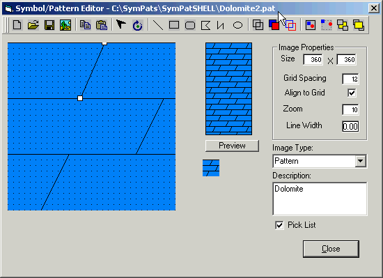 - Create an unlimited variety of custom lithology patterns and symbols including background colors