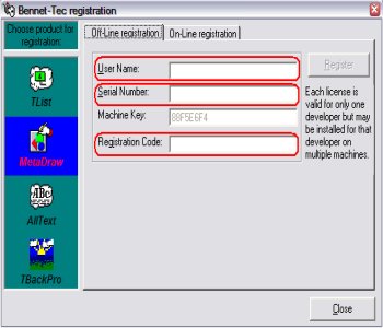 3. Fill in the Serial Number, User Name and Registration Code fields