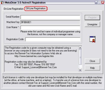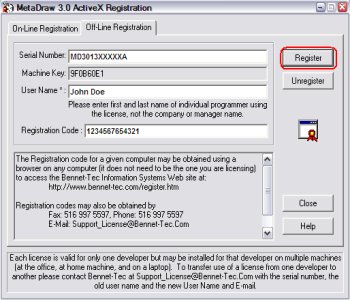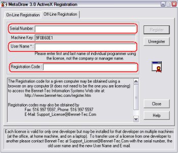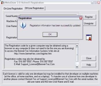 This will complete the registration process. If you have a problem with the registration process, Please contact us Monday through Friday 9AM - 5PM (EST) at (516) 997-5596. Note: While the registration code returned by this web site is valid for only one machine, a developer may register his/her license on up to 5 machines for his or her own use. Remember the license may not be shared among developers. A separate license must be purchased for each developer. |
