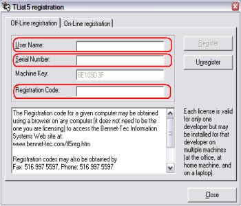 3. Fill in the Serial Number, User Name and Registration Code fields